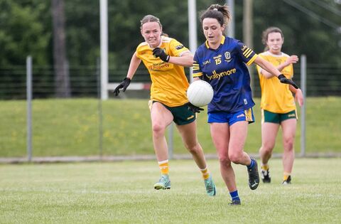 Roscommon captain, Niamh Feeney, takes possession forward under the watchful eye of her Antrim counterpart, Ciara Brown, during Sunday afternoon's championship encounter at Woodmount. Picture: Michelle Hughes Walsh