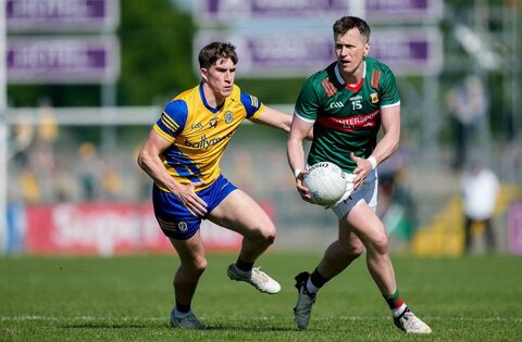 Mayo moved the ball swiftly to O’Donoghue who was fouled in the eyes of referee Barry Cassidy, although Roscommon argued that the Mayo forward had taken too many steps.