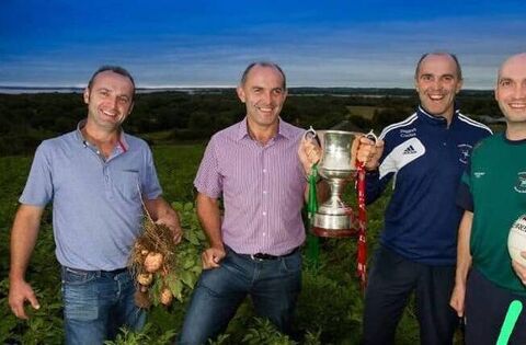 LUCRATIVE CROP: Colm, Tom, Brian and Johnny Lennon in the Spud Fields of Kiltoom with the Andy Merrigan Cup in 2013. Picture: Brendan Hynes