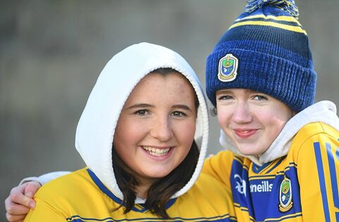 Ruby Dowling and Rosie O’Farrell, Kilbride, supporting the Roscommon senior footballers during their league victory against Donegal at King and Moffatt Dr. Hyde Park on Sunday last. Pictures: Gerard O'Loughlin