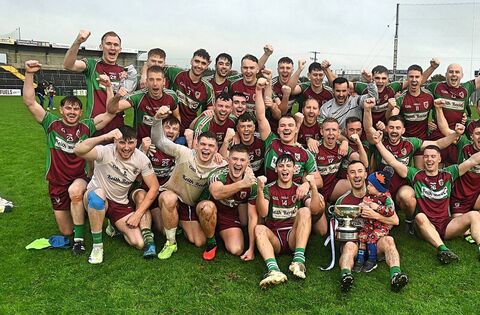Last year's intermediate football champions, Castlerea St. Kevin's, had plenty to celebrate in the senior football championship on Friday evening. Picture: Gerard O'Loughlin