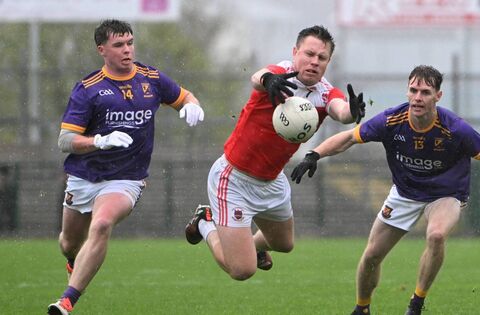 Niall Daly of Pádraig Pearses with Peter Gillooly and Cian Connolly of Roscommon Gaels in last year's county final. Picture: INPHO