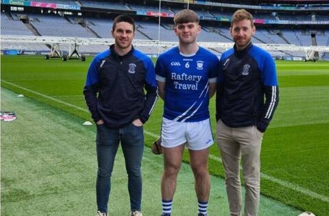 Joint managers of the Coláiste Mhuire, Ballygar, senior hurling team, Evan Niland and Johnny Waldron, with captain Conor Kelly from Four Roads in Croke Park last week ahead of Friday's All-Ireland final.