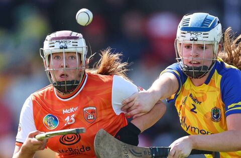 EYES ON THE PRIZE: Armagh's Eimear Smyth and Roscomon's Aideen O'Brien battle for possession. Picture: INPHO/Dan Clohessy