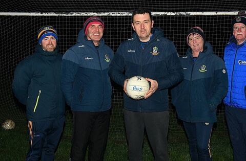 Members of the Roscommon intermediate ladies' football management team, Shane McDermott, Tom Lennon, Ollie Lennon, Liz Hanly and Gerry Morris, at training ahead of Saturday's Division Three League final against Clare. Missing from the photo is Aidan Main. Pictures: Gerard O'Loughlin