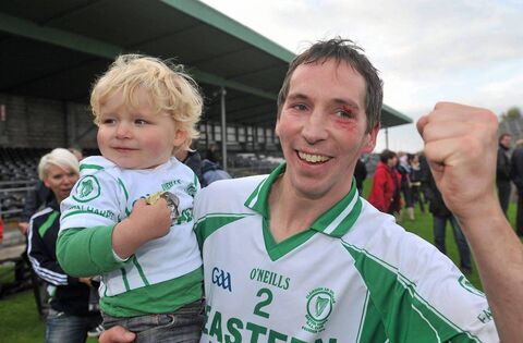 Shamrock Gaels senior football manager, Shane King, with his son Ben after captaining Eastern Harps to Sligo senior football championship glory in 2010.
