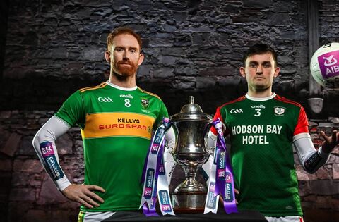 Glen's Conor Glass and St. Brigid's Brian Stack ahead of this afternoon's AIB All-Ireland club senior football final in Croke Park. Picture: Sam Barnes/Sportsfile