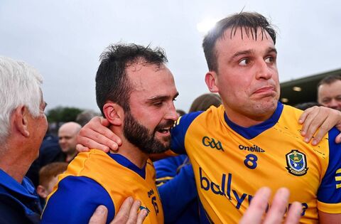 BROTHERS IN ARMS: Enda Smith celebrates Saturday evening's two-point victory against Tyrone with his brother Donie in O'Neills Healy Park, Omagh, on Saturday evening. Picture: Roscommon GAA/Sportsfile
