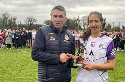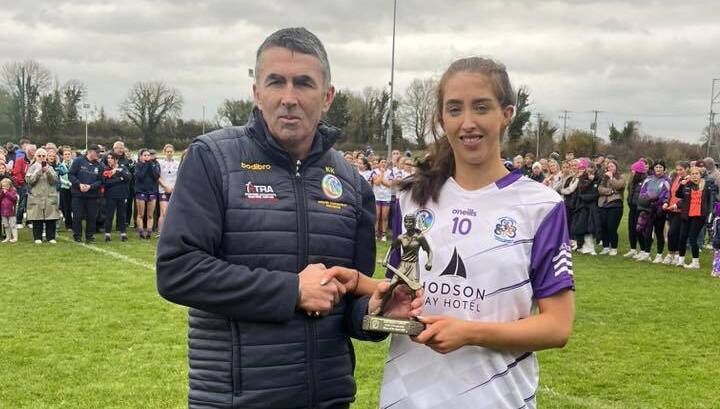 Player of the Match Niamh Watson is presented with her award by Roscommon Camogie Chairperson Kieran Kenny. Picture: Roscommon Camogie.