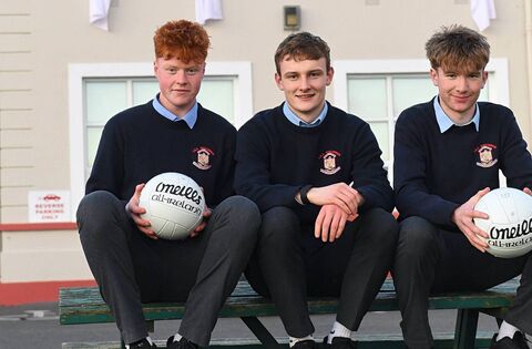 Cian Duggan, Eoghan Carthy, Michael Gillooly in Roscommon CBS last week ahead of Sunday's All-Ireland final against Patrician High School, Carrickmacross, at Glennon Brothers Pearse Park. Picture: Gerard O'Loughlin