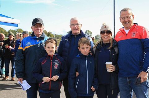 Gerry Ward and Jerry Nerney alongside Shane, Ryan, Orlagh and Tom Cunniffe at Sunday afternoon's senior football championship quarter-final between Boyle and Pádraig Pearses in Enfield. Picture: Bernie O'Farrell
