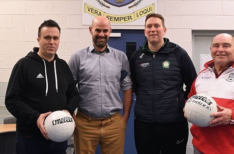 The Roscommon CBS senior football management of Noel Moran, Eoghan Coll, Gerry Lohan and Seán Adamson are looking forward to seeing their players tackle a different challenge in Sunday's All-Ireland Colleges' Senior B football final against Patrician High School, Carrickmacross. Picture: Gerard O'Loughlin