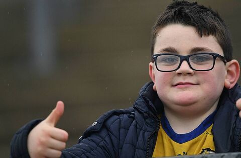 THUMBS UP: Young Roscommon supporter, Ben O'Connor, gives his seal of approval to the Rossies' opening Division Two League victory against Down at King and Moffatt Dr. Hyde Park on Sunday last. Pictures: Gerard O'Loughlin