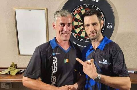 Winner of the Hollywood Bar Darts Superleague Shield, Gerard Glynn, with runner-up Ken Turkington.