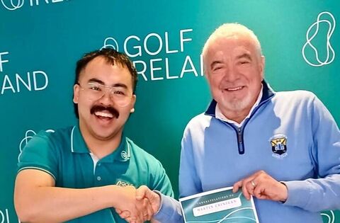 Alex Lai, Inclusion Co-ordinator Golf Ireland, with Martin Crinigan, Strokestown Golf Club, after Martin was shortlisted for the Golf Ireland Volunteer Awards in the Inclusion and Disability category.