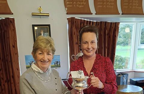 RESULTS: Power Property Women’s Open October 28th, October 29th and October 30th, 1st, Sheila Buckley Byrne (Mount Temple) (20), 36 pts; 2nd, Triona Clinton (Mount Temple) (16), 35 pts; 3rd, Maeve Holmes (16), 34 pts. Chica 15-hole women's competition on Saturday, October 28th, Sunday, October 29th, and Tuesday, October 31st, 1st, Carol McGetrick (26), 28 pts; 2nd, Claire Dowling (27), 27 pts. Nine-hole club competition on Saturday, October 28th, Sunday, October 29th, and Tuesday, October 31st, 1st, Bernie Stapleton (22), 18 pts; 2nd, Angela Veldon (13), 17 pts. The Get into Golf Year 2 winner was Joan Conway (27), 23 pts. ’97 Club on Thursday, November 2nd, 1st, Geraldine Boland, 25 pts; 2nd, Cathryn Mannion, 21 pts (B6). The results of the Power Property Halloween Open men’s singles stableford were: first nett, Thomas Healy (28), 39 pts (B9); Cat A (0-7), Conor Quilty (6), 35 pts; Cat B (8-15), Fergal Shine (14), 39 pts; Cat C (16-23), Tom Donohoe (16), 37 pts; Cat D (24+), Patrick Kenny (27), 36 pts. Paul Gilligan (9), 34 points, was winner of the Wednesday Open 15-hole competition on Wednesday, October 25th. Liam Martin and Kenneth Martin, 38 points (B6), were winners of the 15-hole fourball (Plumbers Invitational) on Monday, October 30th. Results from AWGS Terry Carmody’s Prize on Thursday, October 26th, were: winner, Frank Sheeran, 35 pts; 2nd, P. McNamara, 33 pts; 3rd, E. Moloney, 32 pts; Class 1, D. O’Donoghue, P. Burke; Class 2, J. Kinahan, P. Madden; Class 3, PJ Martin, PJ Lenehan; Vets, R. Tierney.