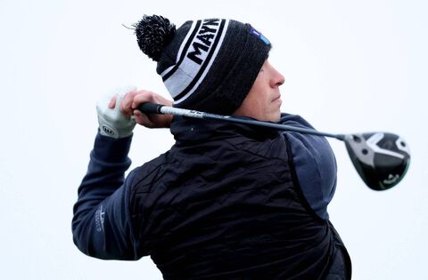 Simon Walker takes his tee shot on the first hole. Picture: INPHO/James Crombie
