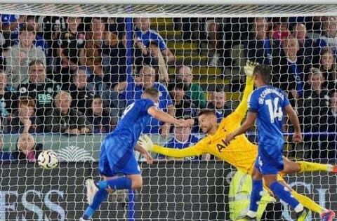 Spurs were ahead at half-time thanks to Pedro Porro’s 29th-minute header after a one-sided first 45 at King Power Stadium.