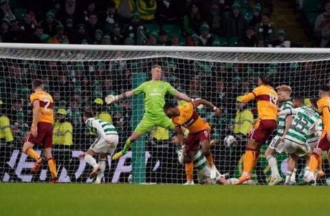 Liam Scales soon came close with a more difficult header as his effort drifted wide of the far post from Turnbull’s corner, but the danger was not over for Motherwell as replays showed Butcher had held back Johnston as he followed in the header.