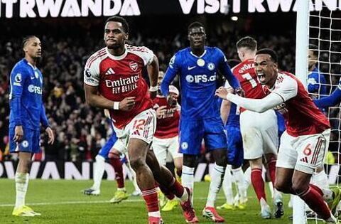 Arsenal passed a major examination of their Premier League title credentials after Jurrien Timber and William Saliba both scored from corners in a 2-1 win over 10-man Chelsea at the Emirates Stadium.