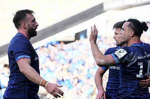 Leinster were also awarded a penalty try before Ross Byrne converted his own score and wing James Lowe crossed twice during the final three minutes, with Byrne converting the second.