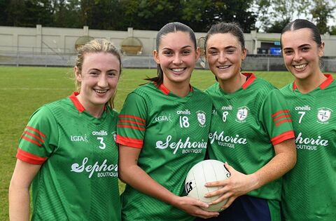 St. Brigid's players, Áine McGrath, Sarah O’Rourke Abby Curran and Aoibhe Lennon, ready to tackle Saturday's county senior ladies' football final against Clann na nGael in Ballyleague. Pictures: Gerard O'Loughlin