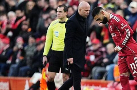 Salah’s immediately combined with Alexis Mac Allister to almost set up Ekitike, and the Kop broke into Salah’s song before he was involved again as Ekitike volleyed wide.