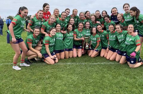 The St. Brigid's senior football panel with the Marie McAleer Cup after becoming Roscommon senior ladies' football champions on Saturday afternoon.