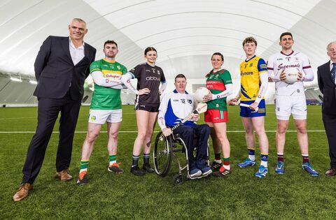 Pictured at the announcement of Pinergy becoming the energy partner of Connacht GAA at the University of Galway Connacht GAA Air Dome were Pinergy Chief Commercial Officer, Daire Keating; Leitrim senior footballer, Ryan O’Rourke; Ciara Walsh, Sligo camogie; Pat Carty, Ireland Wheelchair Hurling; Kathryn Sullivan, Mayo LGFA; James Dillon, Roscommon senior hurler; Connor Gleeson, Galway senior football goalkeeper, and Connacht GAA President Vincent Neary. Picture: INPHO/Laszlo Geczo