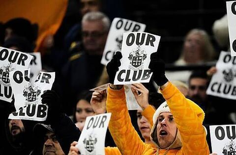 Fans held up ‘Our Club’ signs in the 18th minute as they called for owners Fosun to sell the day after under-fire Jeff Shi stepped down as Wolves executive chairman.