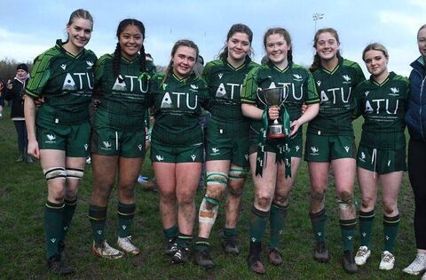 Creggs players Jemima Adams Verling, Sarah Purcell (captain), Ciara Corrigan, Síofra Hession, Shauna Walsh, Isabelle Quinn and Merisa Kiripati and Shauna McDermott who were part of the victorious Connacht U-18 women's rugby team.
