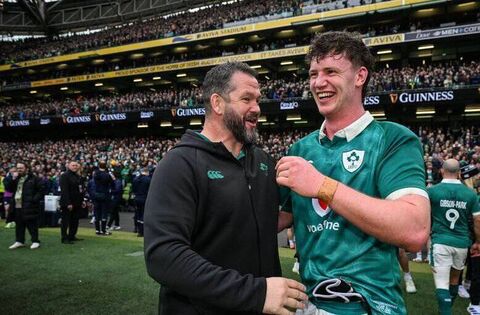 Ireland Head Coach Andy Farrell congratulates Darragh Murray after the Roscommon man's impressive Six Nations debut at the Aviva Stadium on Saturday. Picture: Connacht Rugby