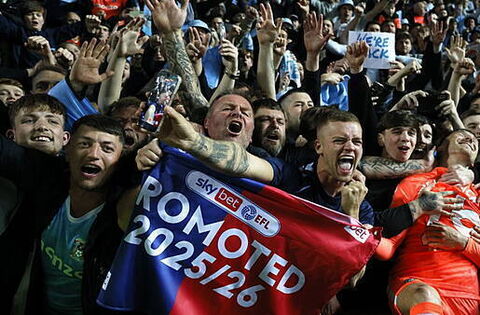 Coventry players celebrate promotion to the Premier League