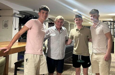 Liverpool legend Kenny Dalglish pictured in Spain with Conor Kelly, Croghan (far left), Nathan Casey, Carrick-on-Shannon and Scott Kerr, Leitrim Village.