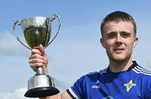 Simon Leonard lifts the Premier Division trophy following St. John's Athletic's historic triumph in May 2025.