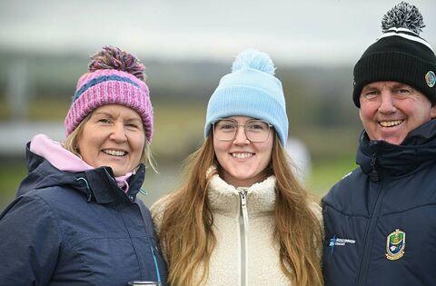 Trish, Ella and Tom Killion supporting the St. Dominic's senior camogie team during their recent Connacht final against Killimor in Knockcroghery. Picture: Gerard O'Loughlin