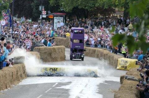 From Belly of the Whale’s Harry Potter-inspired “Knight Bus” to Fast and Furniture’s sideways Simpson’s sofa, spectators were thoroughly entertained as 59 teams hurtled down the 420-metre course.