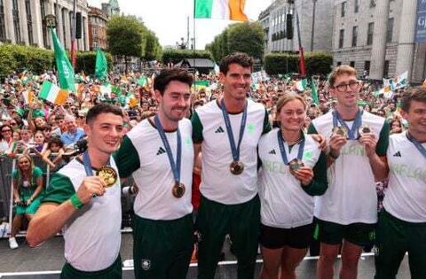 Thousands gather on O'Connell Street to welcome Irish Olympians home