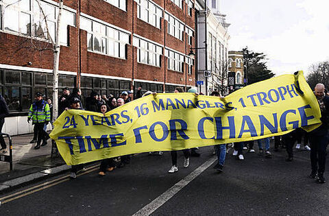 The largest – aimed at majority owners ENIC – read: ‘24 years, 16 managers, 1 trophy – Time for change’.