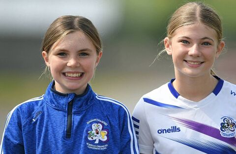 St. Dominic's supporters, Mia Connaughton and Violet Wright-Looby, will be hoping that their side can secure their senior status against Western Gaels on Friday evening. Picture: Gerard O'Loughlin
