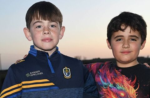 Liam Fleming and Scott Carroll supporting the Roscommon senior footballers during their O'Rourke Cup game against Boyle in Lisnamult on Friday evening. Picture: Gerard O'Loughlin