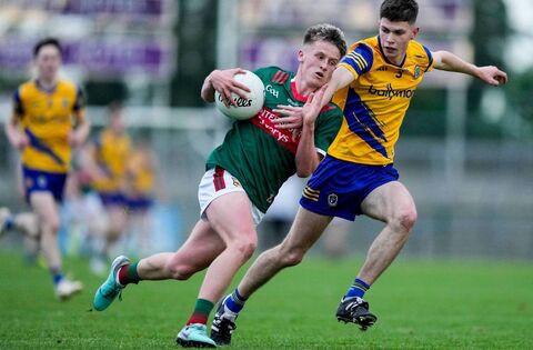 Mayo's David Hurley and Roscommon's Gordon Casey in action during the recent Connacht minor football final. Picture: INPHO/James Lawlor