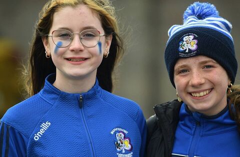 Emily Donnelly and Emily Conneally supporting St. Dominic's during Sunday's senior hurling final against Four Roads at Dr. Hyde Park. Picture: Gerard O'Loughlin
