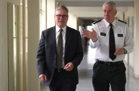 Mr Starmer met chief constable Jon Boutcher at the Police Service of Northern Ireland’s training college in Belfast on an engagement that also saw him speak with officers involved in responding to the recent bouts of race-related violence and disorder in the region.