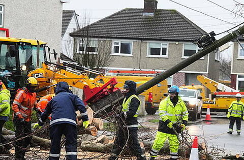 Crews from the UK, Austria and Finland have arrived here to assist with the restoration of power and are being briefed on the worst-affected areas.