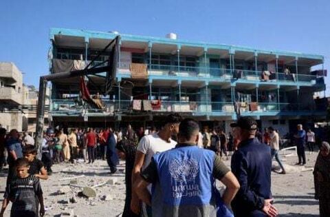The workers died following an attack on a school where thousands of displaced Palestinians were sheltering.