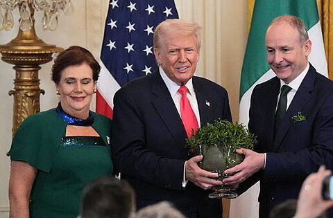 Mr Trump declared “I love the Irish” at a traditional annual event in which Mr Martin gifted him a bowl of shamrock to mark the deep ties between the US and Ireland.