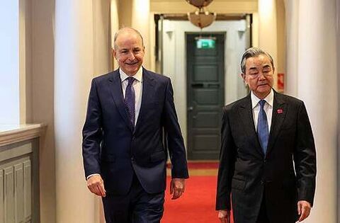 Taoiseach Micheál Martin and Tánaiste Simon Harris hosted Mr Wang on Monday.