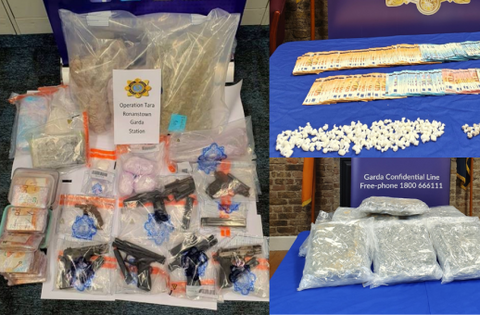 The next day, officers from Ronanstown seized seven firearms and ammunition, along with cannabis and cocaine with a combined estimated value of €200,000, and €100,000 in cash following planned searches of four residential properties in the Clondalkin area.