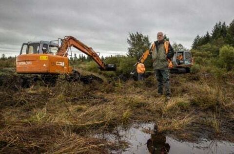 Jon Hill, of the Independent Commission for the Location of Victims’ Remains, stands besides excavators at Bragan bog near Emyvale in Co Monaghan (Liam McBurney/PA)